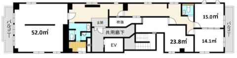 ワンフロア1テナント・現状有姿・共用玄関オートロック・エアコン有(残置) |