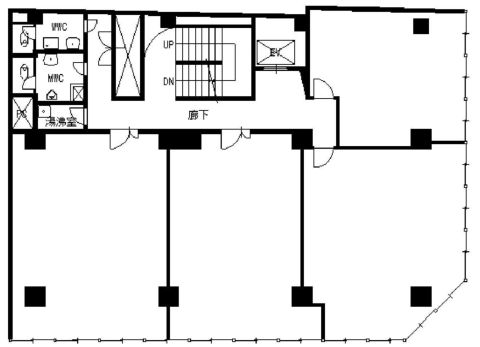 基準階面積は約50坪弱ありますが、約10~20坪の使いやすい広さに分割した貸室が中心ですので、少人数の企業様には人気の高いオフィスビルです。
